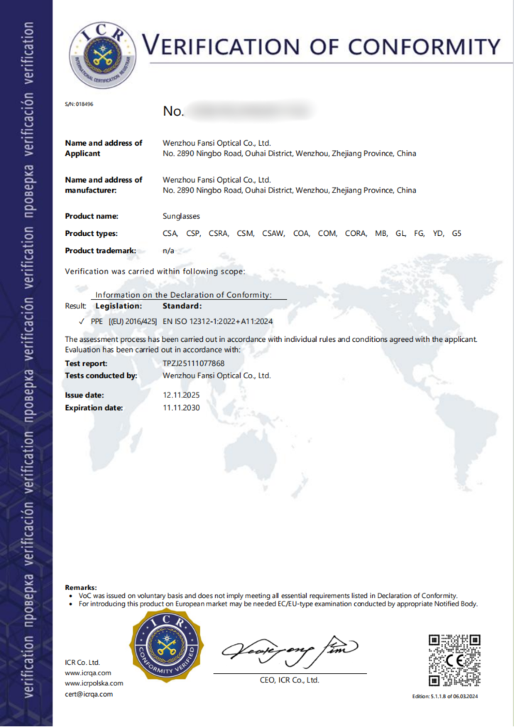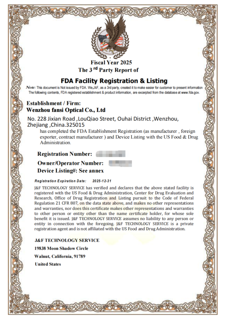 Well experienced in the eyewear industry for over 15 years,Fansi is well qualified with a lot of standards,like CE,FDA,FSC,GRS,BSCI certificates,etc…